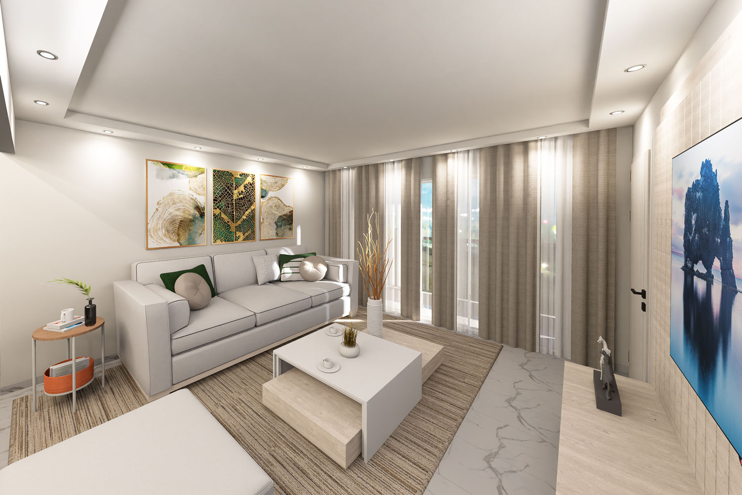 - Revestimiento en cerámica y mármol: acabados duraderos y de alto valor estético.