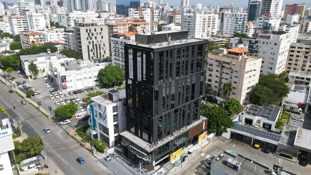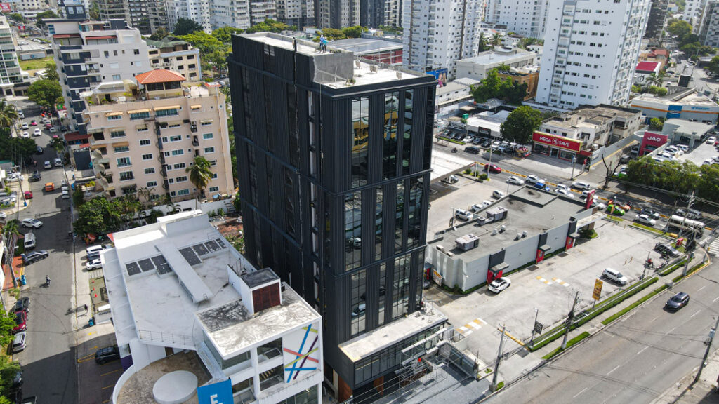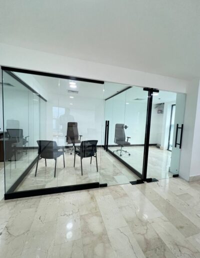 Instalación Muro Cortina en perfilería color negra con vidrios insulados el cual permite el aislamiento térmico, acústico, reducción de condensación y ahorro de energía.